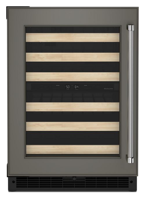 24″ Panel-Ready Undercounter Wine Cellar with Wood-Front Racks. This Undercounter Wine Cellar with Full-Extension Wood-Front Racks holds up to 46 standard Bordeaux-size bottles. Two Temperature-Controlled Zones let you separate reds and whites to store each at the temperature you enjoy, and Motion-Activated LED Lighting turns on as you approach, making it easy to see what’s inside. Fully Flush Installation and Panel-Ready Design let you seamlessly match your cabinetry.