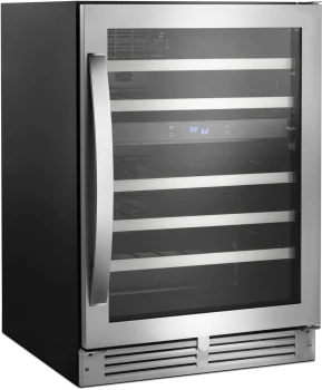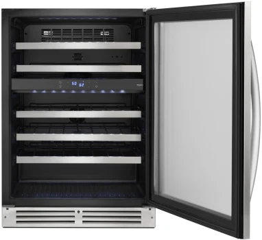 24″ Undercounter Wine Center, 51-Bottle Capacity, Dual Zones, LED Lighting, Reversible Door.