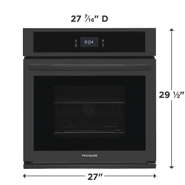 The 27″ Single Electric Wall Oven offers versatile cooking features for any kitchen. With Fan Convection, it ensures faster, more even multi-rack baking results, improving efficiency. The Self-Clean Oven function provides easy maintenance with 2, 3, or 4-hour cleaning cycles, keeping the oven spotless with minimal effort. The Premium Touch Screen Control Panel features a 4.3-inch, full-color display for easy navigation and control. Custom Broil Temp Setting allows precise broiling with a temperature range of 400-550 degrees. The Convenient Cook Time Setting lets you program cooking durations, while the Keep Warm Setting ensures meals stay warm until ready to serve. This oven combines convenience, performance, and efficiency to make cooking easier.