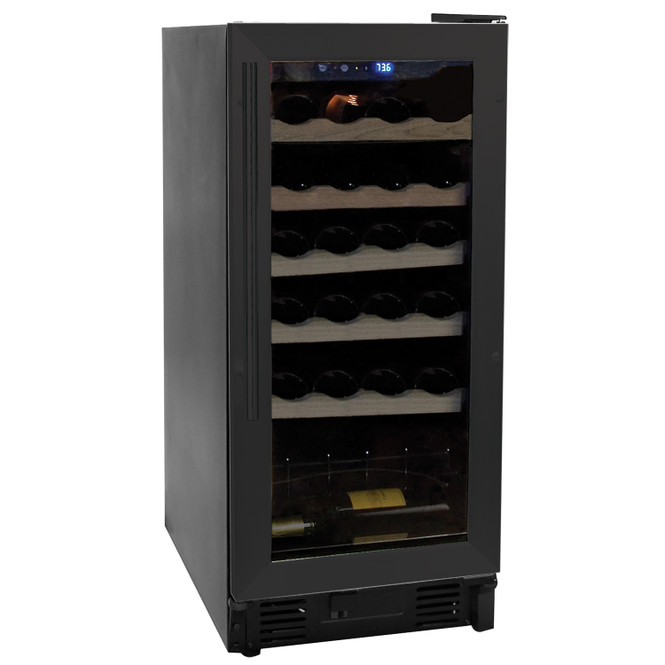 The 26-bottle wine cellar offers a stylish and practical solution for wine storage. Featuring an LED electronic control display, it allows you to easily set the ideal temperature for both red and white wines. The single cooling zone with adjustable electronic control and compressor-based cooling ensures consistent performance. Glide-out, wood-trimmed racks make bottle access easy while enhancing label visibility. Interior lighting softly illuminates your collection, and the see-through door with a pro-style handle adds a sleek, modern touch. Compact yet spacious, it fits well into various spaces with dimensions of 14 7/8″ in width, 22 1/8″ in depth, and 34 1/4″ in height. Built for durability, it includes a 1-year parts and labor warranty, making it a reliable and attractive choice for any wine enthusiast.
