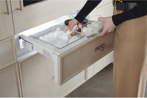 - Freezer Drawer with Ice Maker: Removable ice bin and scoop included.