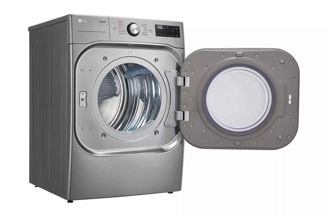 9.0 cu.ft. Mega Capacity dryer with AI technology for optimal drying. TurboSteam™ refreshes clothes, while FlowSense® indicators ensure efficiency and safety. ENERGY STAR® certified for energy savings, with smart connectivity via the ThinQ® app. Plus, get an extra 1-year limited warranty with the ThinQ Offer through 12/31/24.